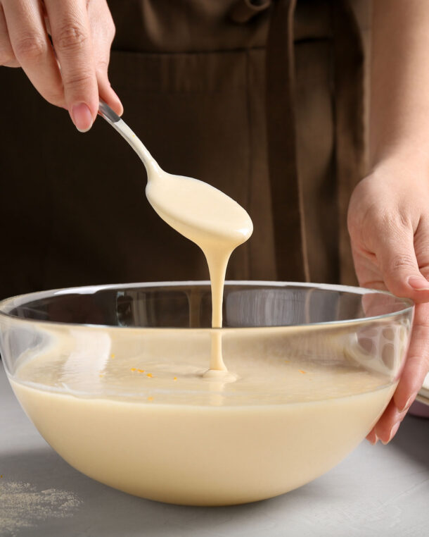 - Προσθέτουμε σταδιακά τη σόδα, το τσίπουρο, την μπίρα και το λάδι, ανακατεύοντας συνεχώς με το σύρμα, μέχρι να φτιάξουμε έναν μέτριο χυλό.