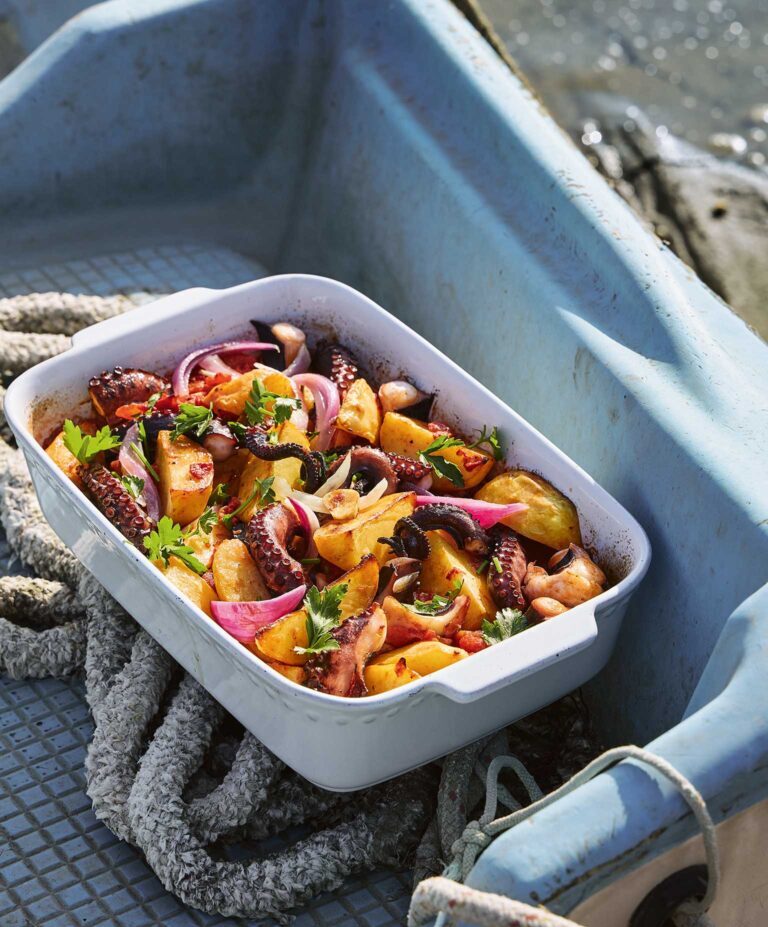 - 2-3 κιλά χταπόδι, καθαρισμένο, ολόκληρο (θα χρειαστούμε 2-3 χταπόδια, ανάλογα με το μέγεθός τους)