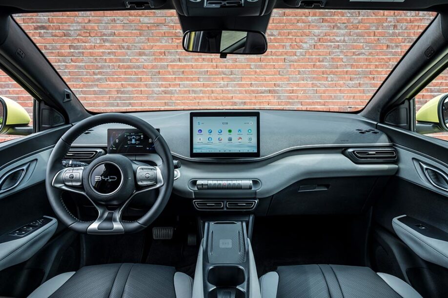 Μεταξύ των σημείων αναφοράς αναφοράς στο εσωτερικό του Dolphin Surf είναι η ηλεκτρικά περιστρεφόμενη οθόνη αφής των 10,1 ιντσών, η οποία μπορεί να αλλάζει από οριζόντια σε κάθετη διάταξη. Το σύστημα infotainment είναι γρήγορο και υποστηρίζει ασύρματες ενημερώσεις καθώς και φωνητικές εντολές που διευκολύνουν τον οδηγό στην καθημερινότητα. Η πρακτικότητα ενισχύεται από τη βάση ασύρματης φόρτισης για το κινητό, την κάμερα οπισθοπορείας (360 μοιρών στο πιο ακριβό μοντέλο) και τους πίσω αισθητήρες παρκαρίσματος. Τα καθίσματα είναι επενδυμένα με Vegan δέρμα και η συναρμογή των διαφόρων τμημάτων δείχνει ότι η BYD στοχεύει ψηλά στην ποιότητα κατασκευής.