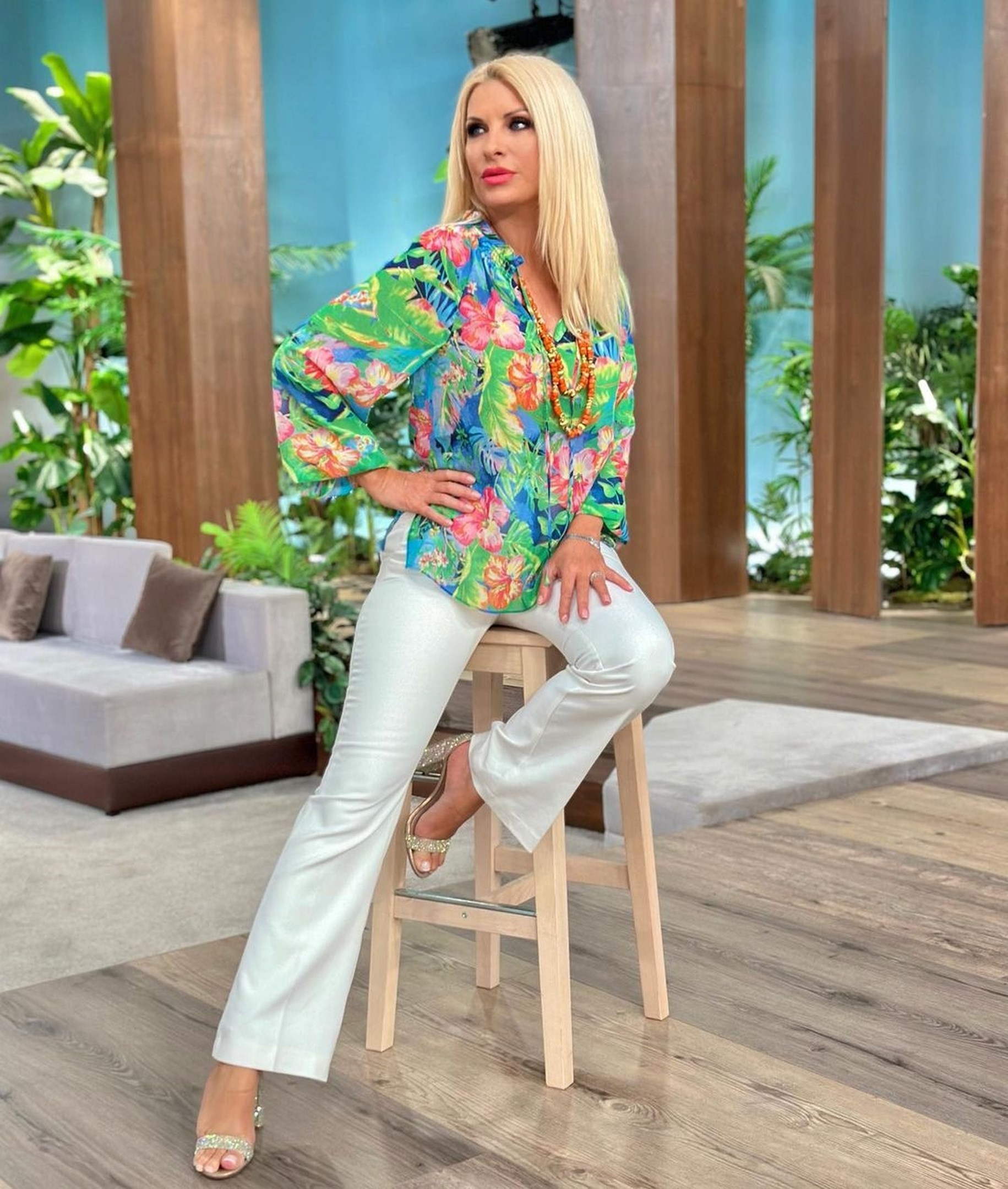 Η παρουσιάστρια της μεσημεριανής εκπομπή του Mega αγαπά τα χρώματα και τα έντονα, λουλουδάτα prints.