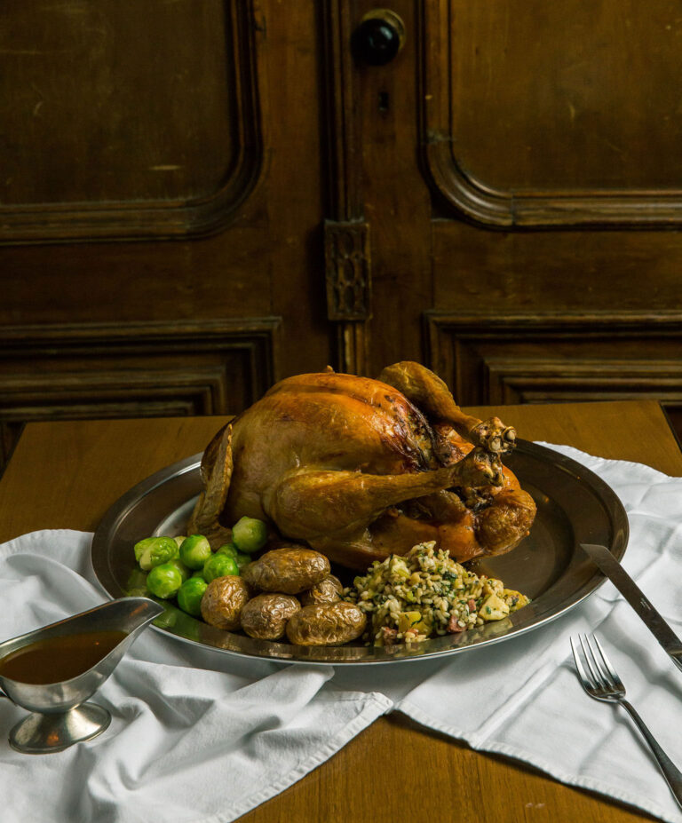 Το μυρωδάτο βούτυρο, η πλούσια γέμιση με συκωτάκια, κάστανα, λουκάνικα κι ένα σωρό μυρωδιές και η έξοχη σάλτσα μήλου το κάνουν δύσκολο να της αντισταθείς.