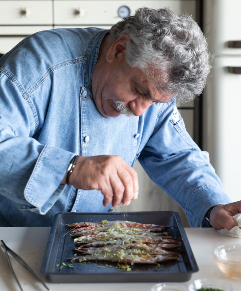 Η συνταγή φτιάχνεται με κάθε είδους γαρίδες, απλώς οι τζάμπο έχουν όγκο και είναι ψωμωμένες. Το ατού τους είναι ότι, όταν ψήνονται με το κέλυφος, διατηρούν τον όγκο τους. Αν τις ψήσουμε καθαρισμένες, θα τον χάσουν εντελώς και θα στεγνώσουν, θα μείνουν σχεδόν οι μισές. Αν επιλέξουμε μικρότερες όμως, τις ψήνουμε εντελώς καθαρισμένες, έως 1 λεπτό.