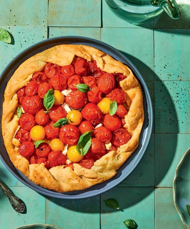 Η γκαλέτ, αυτή η άτεχνη και πανεύκολη τάρτα, δεν χρειάζεται καν ταρτιέρα. Ρουστίκ και με ζύμη νοστιμότατη, φιλοξενεί όποια γέμιση θέλουμε, όπως εδώ τα ανάμεικτα χρωματιστά, ολόγλυκα ντοματίνια.