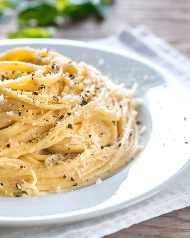 - Σερβίρουμε αμέσως τα cacio e pepe με επιπλέον τυρί και πιπέρι.
