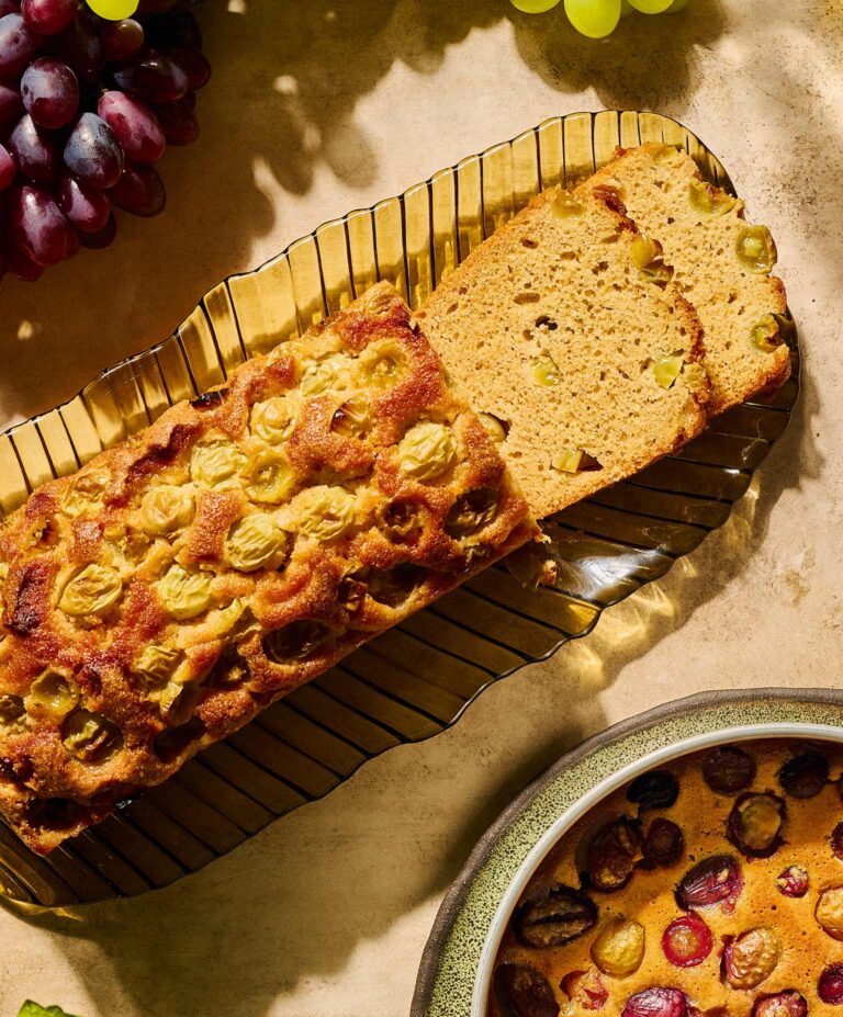 - Το κέικ γίνεται αφράτο και φουσκωτό και τα σταφύλια στην επιφάνεια καραμελώνουν.
