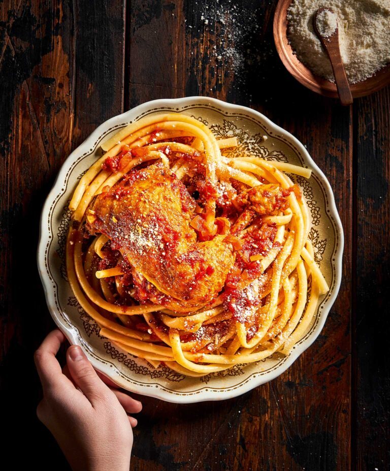 - Στραγγίζουμε και τα μοιράζουμε σε πιάτα. Βάζουμε σε κάθε πιάτο μπόλικη σάλτσα, από 1-2 κομμάτια κόκορα και αν θέλουμε τριμμένη μυζήθρα.