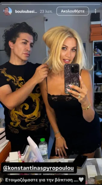 Αρχικά η Κωνσταντίνα Σπυροπούλου μοιράστηκε μια φωτογραφία με τον κομμωτή της, όπου ετοιμαζόταν για τη βάφτιση του γιου της, ενώ αργότερα πόζαρε στο φακό με το εντυπωσιακό φόρεμα που επέλεξε για την ιδιαίτερη μέρα.