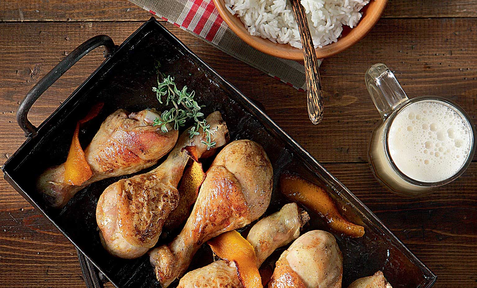 Ψημένα σε μπίρα, αρωματισμένα με φλούδες πορτοκαλιού, τα μπουτάκια κοτόπουλου γίνονται ζουμερά και νόστιμα. Με πατάτες φούρνου και μια καροτοσαλάτα είναι τέλεια.