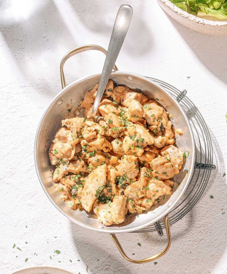 - 1 κιλό φιλέτο κοτόπουλο από μπούτι, κομμένο σε κύβους περίπου 3 εκ.