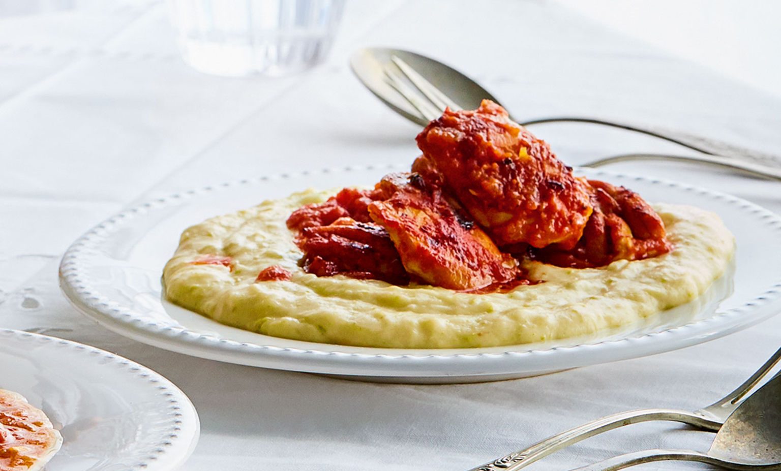 - Σερβίρουμε τον πουρέ με το κοτόπουλο και τη λιγοστή σάλτσα του.