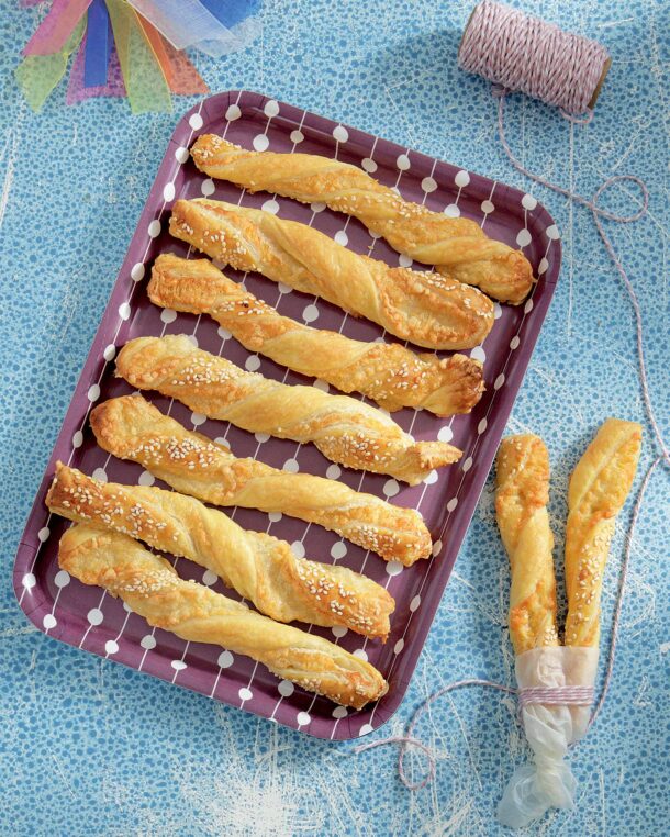 Ένα φύλλο σφολιάτας, ένα κομμάτι κεφαλογραβιέρα κι ένα αυγό χρειαζόμαστε για να φτιάξουμε αυτά τα τυρένια κριτσίνια, που ετοιμάζονται στο πι και φι.
