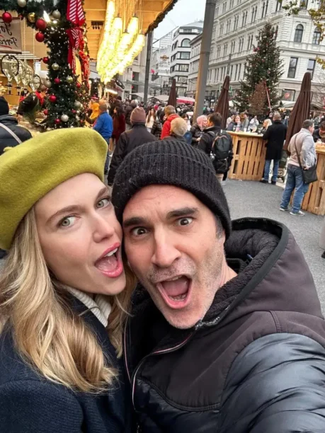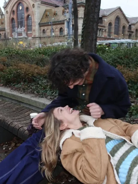 Στα στιγμιότυπα που δημοσίευσε εκείνη και ο πρωταγωνιστής αλλά και δημιουργός της σειράς ποζάρουν σε δρόμους της πόλης, άλλοτε πάνω σε ένα ποδήλατο και άλλοτε σε μια χριστουγεννιάτικη αγορά. «Βουδαπέστη. Γυρίζοντας το ”Maestro in Blue”», έγραψε η Κλέλια Ανδριολάτου στη λεζάντα που συνόδευε τις φωτογραφίες.