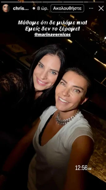 «Μάθαμε ότι δε μιλάμε πια! Εμείς δεν το ξέραμε» ήταν το χιουμοριστικό σχόλιο στη φωτογραφία, στην οποία η Μαρίνα Βερνίκου και η Χριστίνα Μπόμπα απεικονίζονται χαμογελαστές!