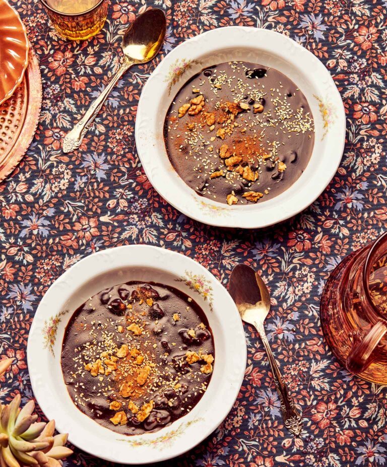 - Σερβίρουμε σε βρεγμένα ρηχά πιάτα. Όσο είναι ζεστή, την πασπαλίζουμε με κανέλα, σουσάμι και τα υπόλοιπα καρύδια και αφήνουμε να κρυώσει εκτός ψυγείου.