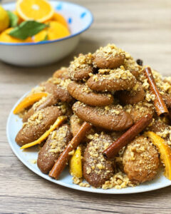 - 60 γρ. (1/2 κούπα) καρύδια, χοντροσπασμένα
