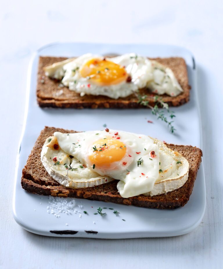 Αυτές οι μπρουσκέτες με κατσικίσιο τυρί, ροζ πιπέρι και αυγά μάτια είναι ιδανικές για brunch αλλά και για ένα ελαφρύ και γρήγορο μεσημεριανό.