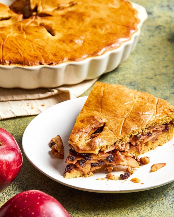 Η ζύμη αυτής της μηλόπιτας δεν έχει ούτε βούτυρο ούτε αυγά. Γίνεται με ένα μαγικό υλικό: το ταχίνι. Μπορείτε να τη χρησιμοποιήσετε και για άλλες γλυκές πίτες και τάρτες.