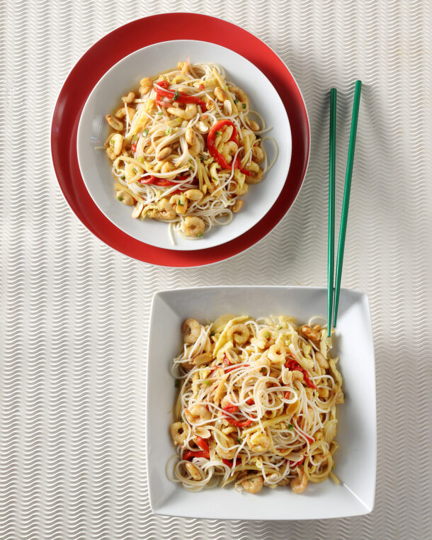 Noodles γαρίδας με αυγό και τις πιο εξωτικές πινελιές για γεύση.