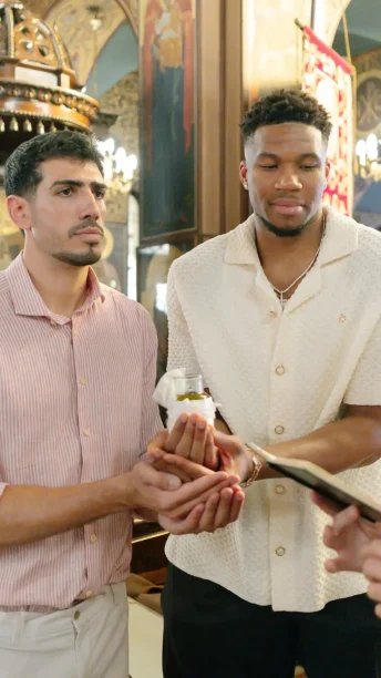 Όπως μπορούμε να διακρίνουμε στα στιγμιότυπα, ο ένας από τους δύο νονούς ήταν ο μεγαλύτερος αδελφός του Κώστα Αντετοκούνμπο, Γιάννης Αντετοκούνμπο.
