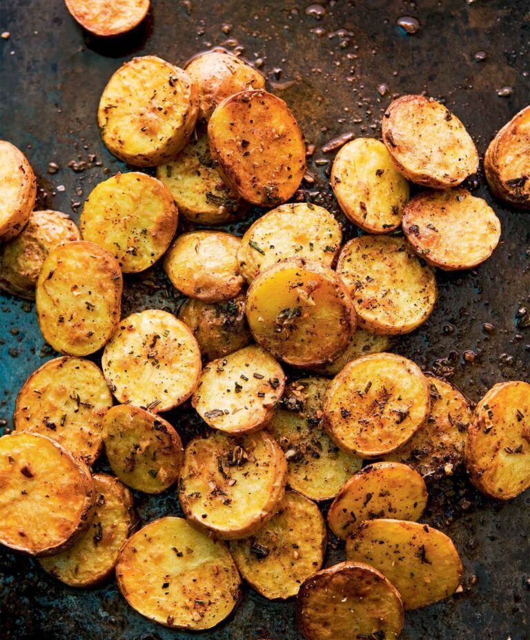 Μυρωδάτες, τραγανές φουρνιστές πατάτες με δεντρολίβανο και κρασί.