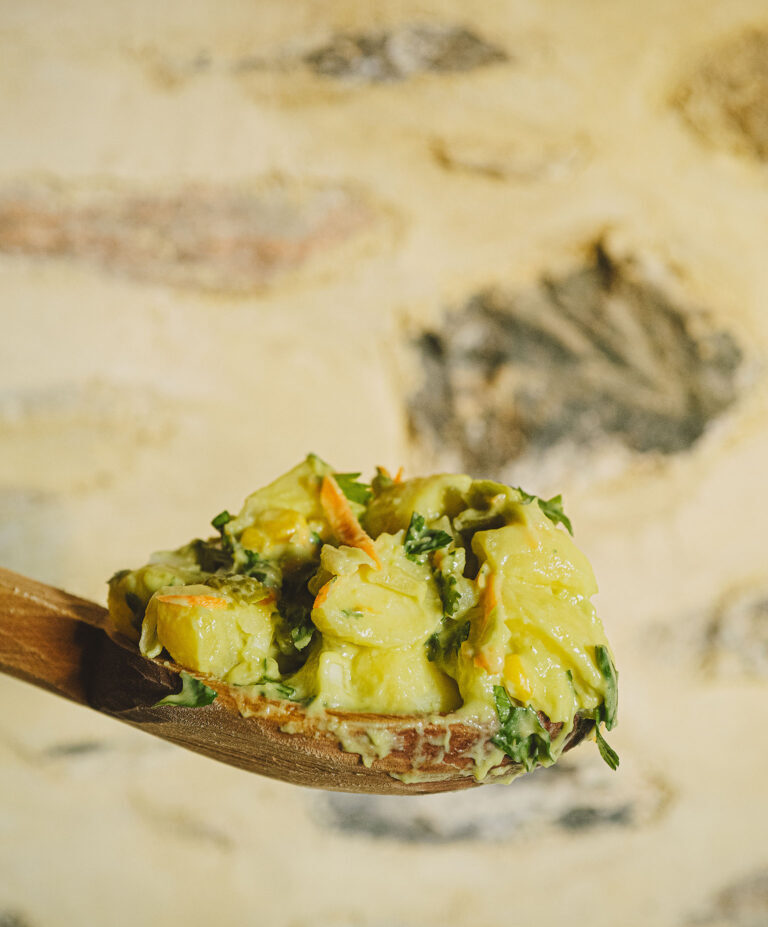 - Για να ετοιμάσουμε την πατατοσαλάτα με νηστίσιμη «μαγιονέζα» αβοκάντο, σε μια κατσαρόλα βράζουμε τις πατάτες με τη φλούδα τους σε άφθονο νερό για 40-45 λεπτά, μέχρι να μαλακώσουν.