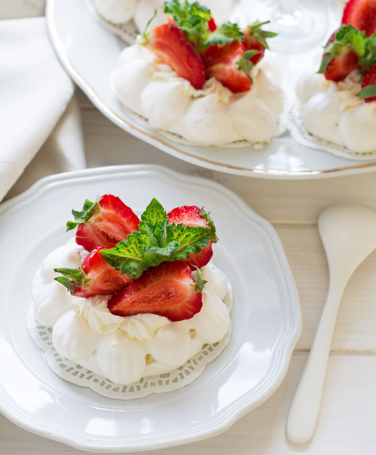 - Σερβίρουμε τις πάβλοβες με φράουλες αμέσως.