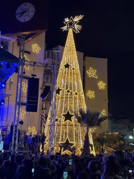 Πλήθος κόσμος βρέθηκε το απόγευμα της Τρίτης 9 Δεκεμβρίου στην Πλατεία Δημαρχείου στο Περιστέρι για τη φωταγώγηση του Χριστουγεννιάτικου Δέντρου.