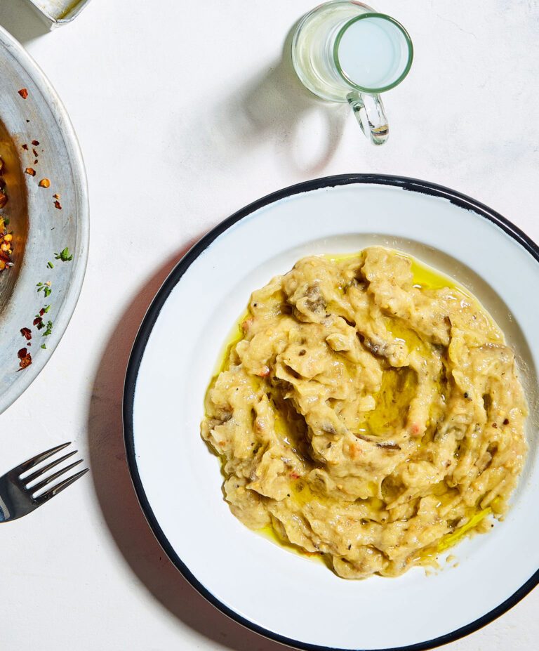 - Σε κάποιους αρέσει η πολίτικη μελιτζανοσαλάτα να είναι πιο ομοιογενής, σαν πουρές. Αν τη θέλουμε έτσι, μπορούμε να την πολτοποιήσουμε ελάχιστα με το μπλέντερ χειρός.