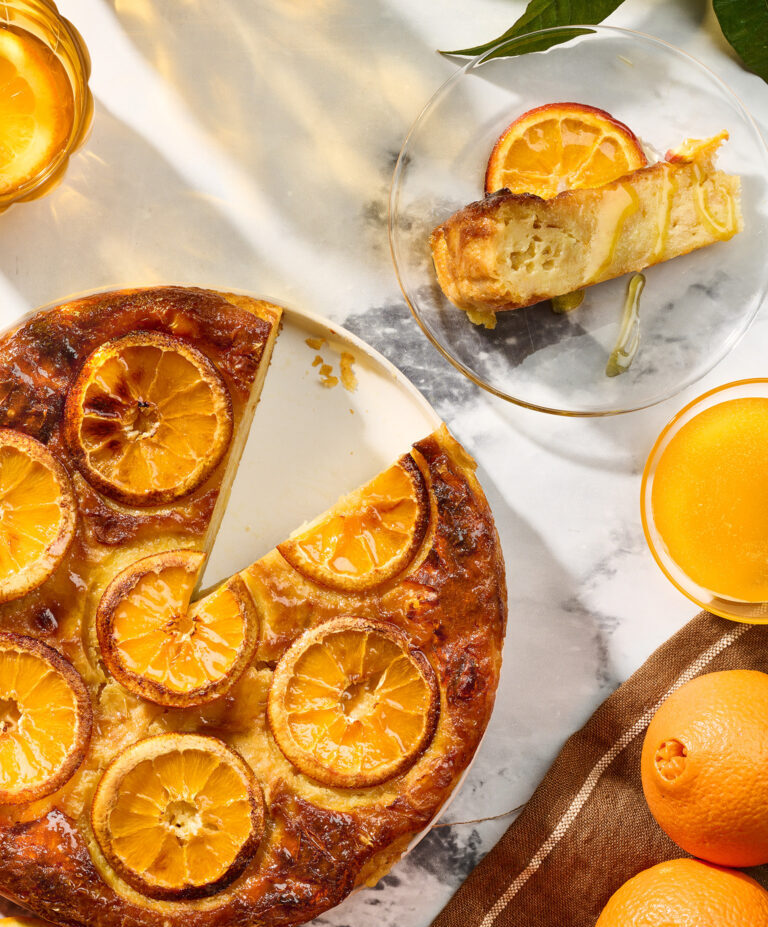 - Στρώνουμε στην επιφάνεια τις φέτες πορτοκαλιού.