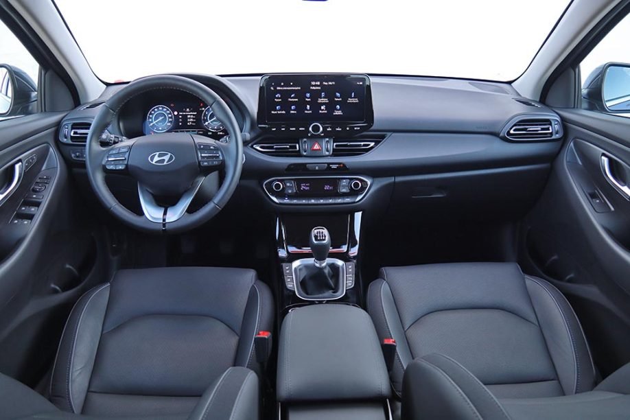 Στο δρόμο το νέο Hyundai i30 είναι προσανατολισμένο στην άνεση, γεγονός που συμβάλλουν ο χαμηλός θόρυβος κύλισης και η ποιοτική λειτουργία των αναρτήσεών του. Οι διάφορες ανωμαλίες του οδοστρώματος φιλτράρονται με αποτελεσματικό τρόπο και οι επιβάτες δεν ενοχλούνται με θορύβους ή κραδασμούς, απολαμβάνοντας με ξεκούραστο τρόπο τις όποιες μετακινήσεις τους. Παρά τον άνετο χαρακτήρα του, το i30 εμφανίζεται ιδιαίτερα σταθερό στις ευθείες των αυτοκινητόδρομων και με σίγουρο πάτημα στις στροφές. Ακόμα και σε απότομες αλλαγές φορτίου με έντονη πίεση και άτσαλη οδήγηση, αντιδρά προβλέψιμα και ελεγχόμενα. Όσον αφορά το μηχανικό σύνολο των 1.5 λτ. με την τεχνολογία Dual Port Injection (DPi) και το μεταβλητό βύθισμα των βαλβίδων (D-CVVT) δεν έχει turbo, ούτε mild hybrid σύστημα και απευθύνεται σε όσους θέλουν μια πιο «παραδοσιακή» τεχνολογία. Η μέγιστη ισχύ των 96 ίππων και των 139 Nm ροπής που αποδίδει επαρκούν για το αμάξωμα των 1.176 κιλών. Σύμφωνα με τις εργοστασιακές μετρήσεις επιταχύνει από στάση στα 100 χλμ./ώρα σε 13,4 δλ., φτάνει την τελική των 178 χλμ./ώρα, καταναλώνει σε μεικτές συνθήκες 6,2 λτ./100 χλμ. και εκπέμπει 141 γρ./χλμ. CO2 (98,7 ευρώ τέλη κυκλοφορίας).
