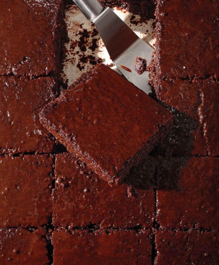 - Το αφήνουμε μέσα στο ταψάκι για τουλάχιστον 1 ώρα, μέχρι να απορροφήσει το σιρόπι και να κρυώσει. Σερβίρουμε τη σοκολατόπιτα κομμένη σε τετράγωνα κομμάτια.