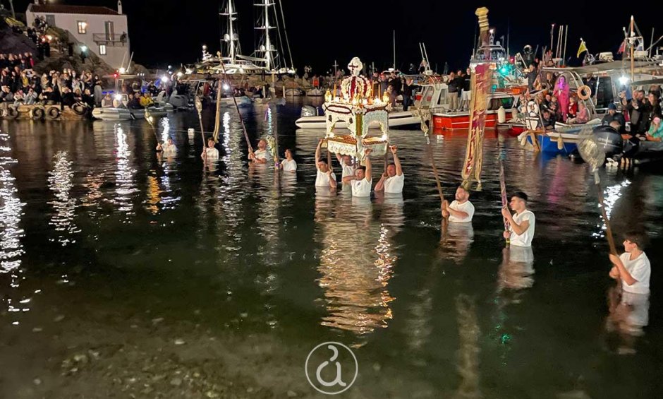 Στην Τήνο, οι περιφορές των Επιταφίων στη Χώρα συγκλίνουν στη μαρμάρινη εξέδρα της παραλίας, ενώ ο Επιτάφιος της Ενορίας του Αγίου Νεκταρίου καταλήγει μέσα στη θάλασσα, στην περιοχή Καλάμια στα Κιόνια.