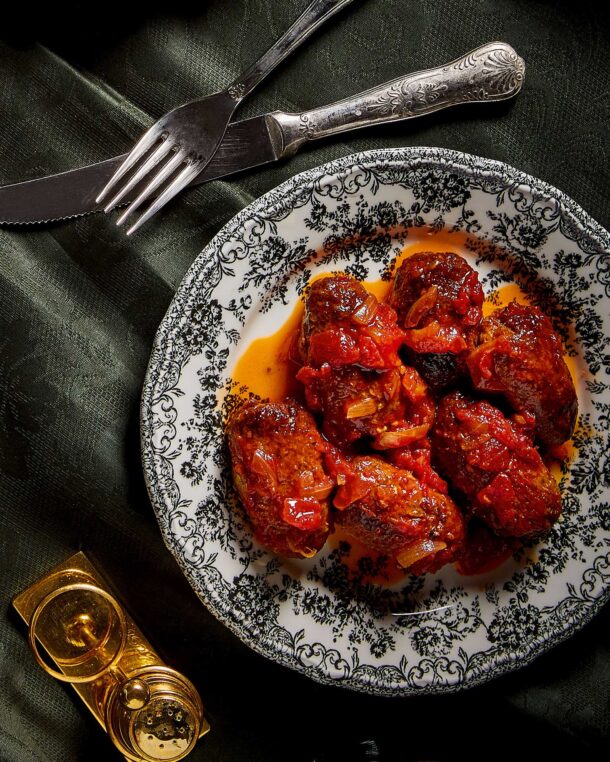 Είναι ένα πιάτο με μεγάλη ιστορία. Έχει σερβιριστεί σε πολλά τραπέζια. Πλούσια, με μοσχοβολιστή κόκκινη σάλτσα, αυτά τα παραδοσιακά σμυρναίικα σουτζουκάκια είναι στα αλήθεια πεντανόστιμα.