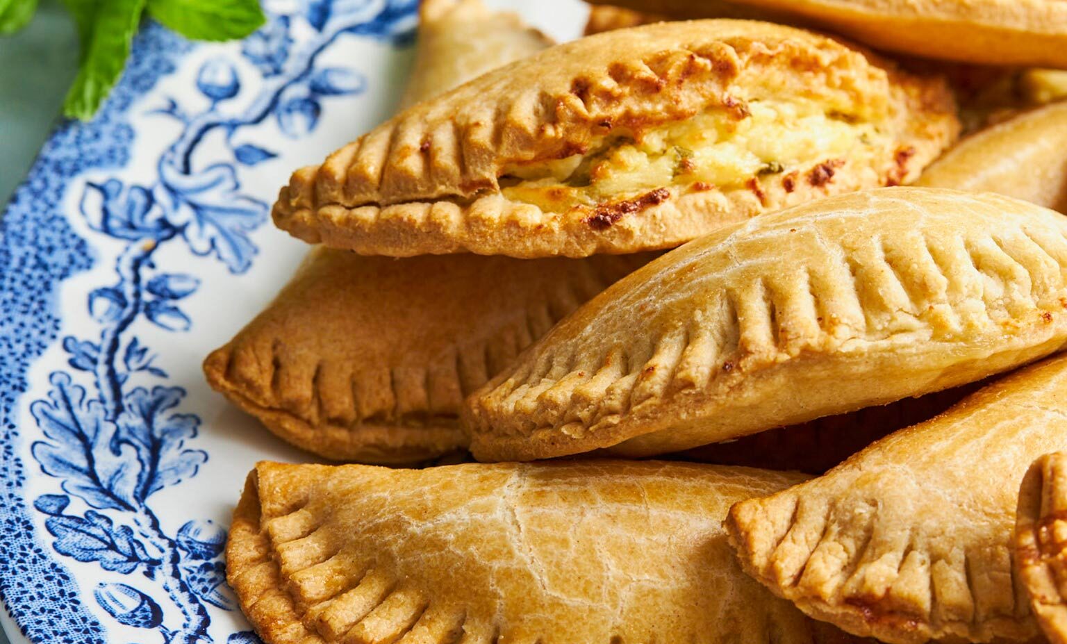 Σε άλλο μπολ ανακατεύουμε όλα τα υλικά για τη γέμιση. Βάζουμε από 2 μεγάλες κουτ. σούπας σε κάθε πιτάκι και το διπλώνουμε σε μισοφέγγαρο πιέζοντας καλά στο σημείο της ένωσης με ένα πιρούνι. Αν χρειαστεί βρέχουμε και με λίγο νερό, για να κολλήσει καλά η ζύμη.
